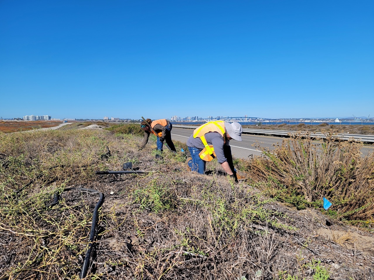 - 2,354 liters of non-native biomass including, but not limited to, Maltese star-thistle (Centaurea melitensis), Carpobrotus edulis, and Cakile maritima were removed from the project site in one year alone
